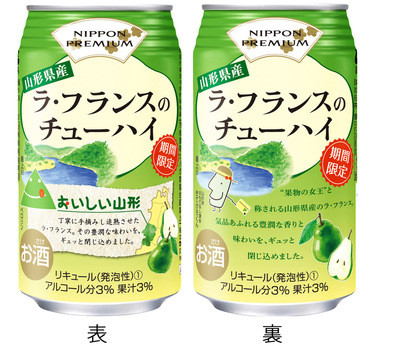 現在、「NIPPON PREMIUM」シリーズは、全国のご当地素材を使用したさまざまなラインアップで展開し、ご好評をいただいています。このたび、期間限定の「NIPPON PREMIUM 山形県産ラ・フランスのチューハイ」を加えることで、こだわりのご当地チューハイを求める消費者のニーズにお応えします。