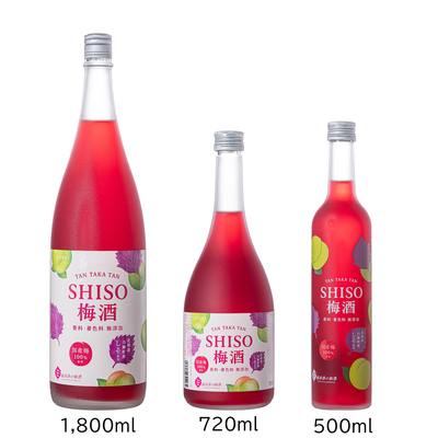 「TAN TAKA TAN SHISO梅酒」は、しそ焼酎「鍛高譚」に使用されている「赤シソ」を使用した梅酒です。天然の鮮やかなルビー色と、爽やかな赤シソの香りが楽しめる甘酸っぱい味わいが特長で、ロックやソーダ割り、ジュース割りや飲むヨーグルト割りなどでお楽しみいただけます。