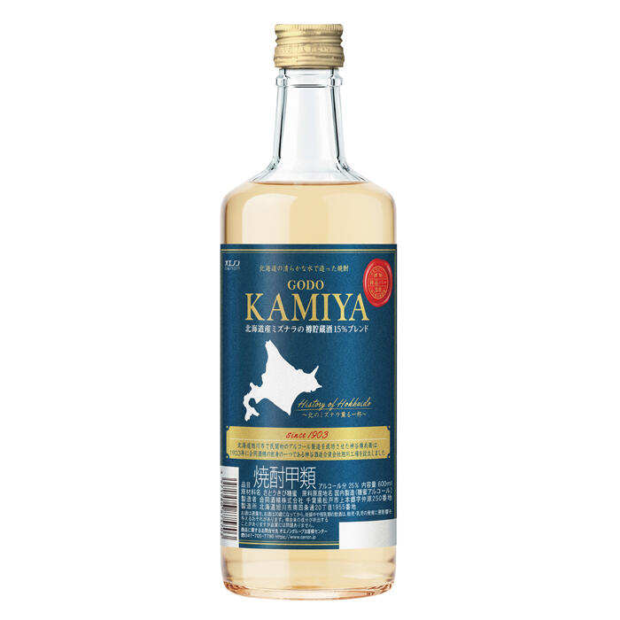 北海道産原料にこだわり、同社旭川工場で製造した甲類焼酎です。北海道産のミズナラ樽で貯蔵した樽貯蔵原酒を15%ブレンドすることで、香り豊かなコク深いあじわいに仕上げました。